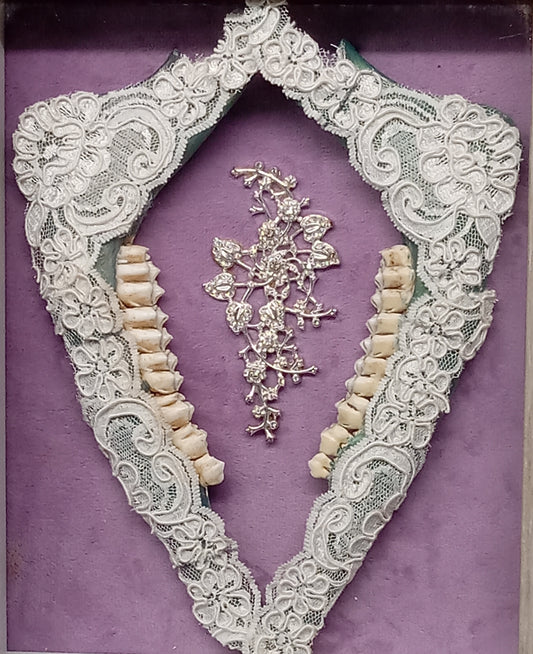 Lace Covered Deer Jaws Framed